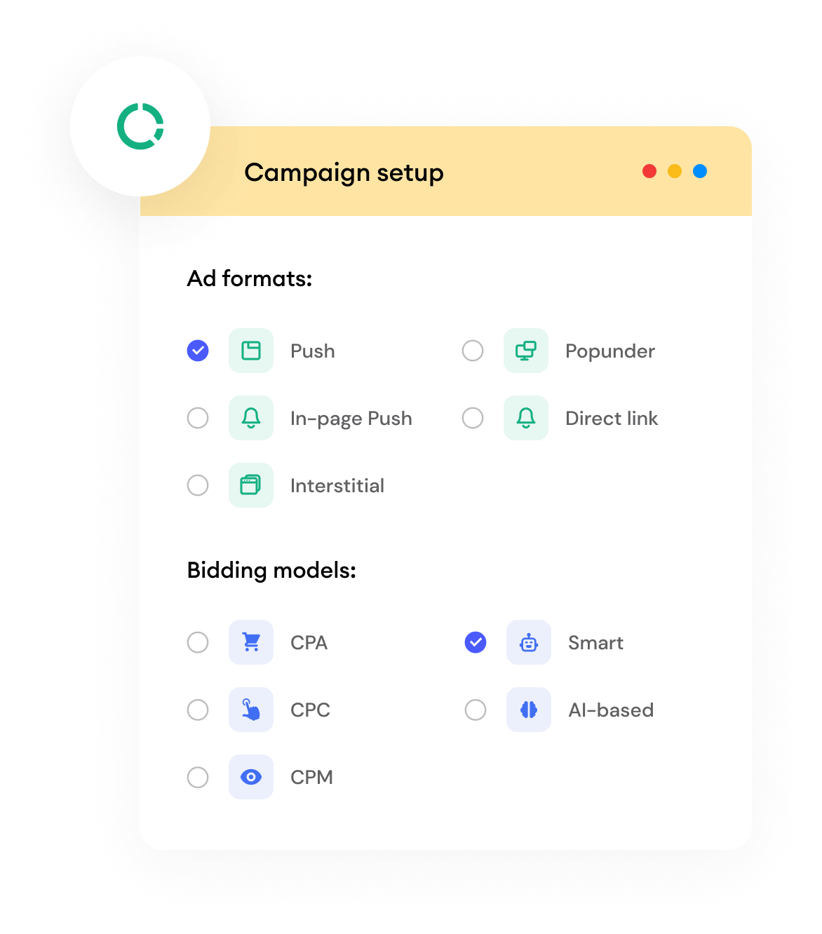 The intuitive interface will guide you through the campaign setup so that you start in minutes. Test creatives, audiences, formats, platforms, GEOs - all easy and scalable.AdTech for affiliates