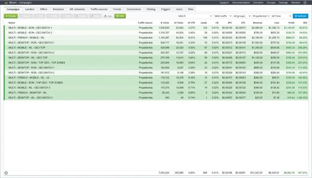 A very interesting part about this campaign is that zones that have a huge volume of traffic at PropellerAds, but very low CTR/Conversion Rate and would normally do poorly in most GEOs, have generated the most profits!