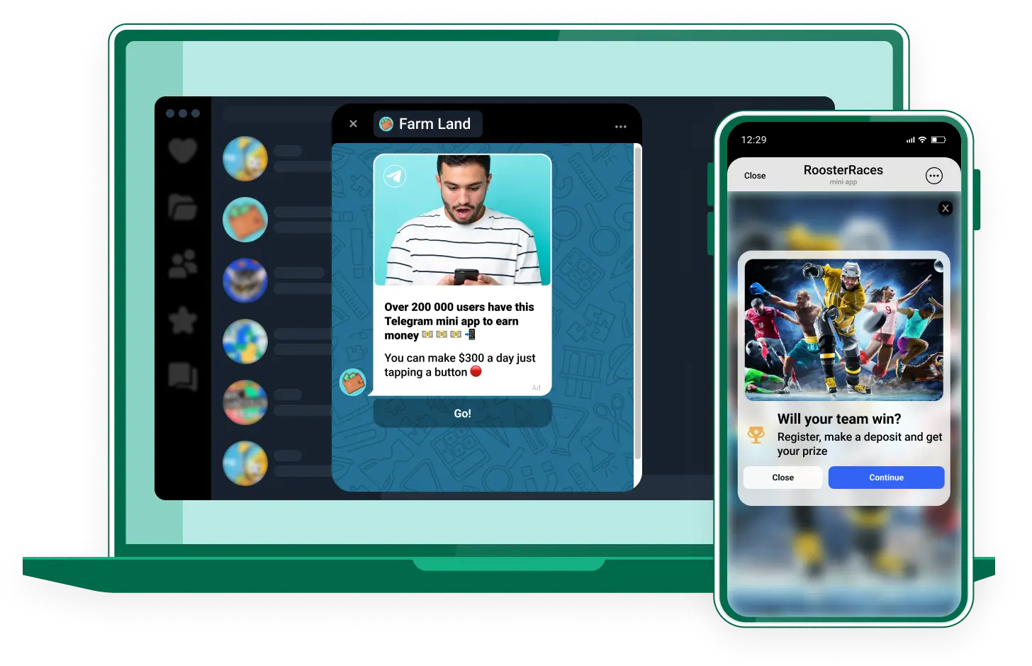 Based on our tests, Telegram users show CTR and CR 10-20x higher than on traditional display ad formats.