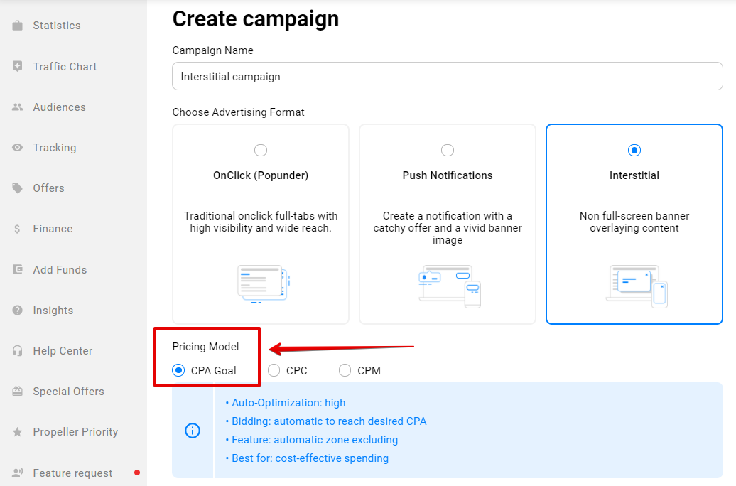 How so? Because the CPA Goal is now available on all PropellerAds formats: Push ads, Popunder ads, and now Interstitials as well!