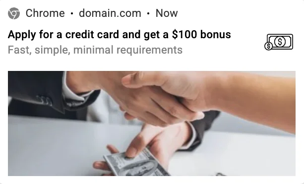 Push ads remain the top-performing format for Finance offers in PropellerAds. But here’s the secret: your Push creatives must be specific, valuable, and emotionally engaging (and relevant, of course!).