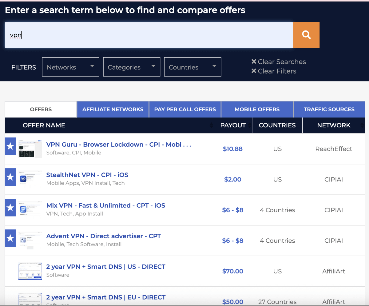 Some offers come directly from brands (direct affiliate programs), while others are available through CPA networks.