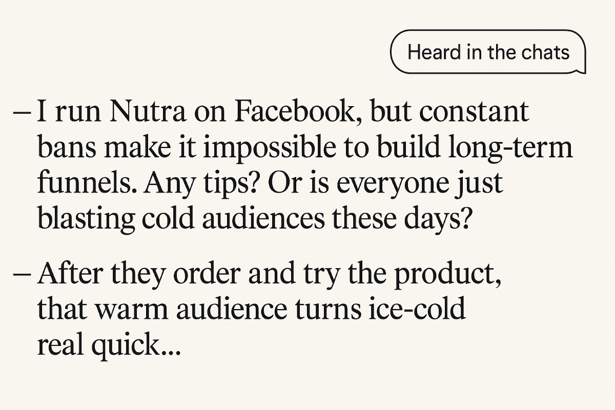 - 75% Facebook (Meta). Still the main traffic source, but the bans make it harder, so creatives must be handled very carefully.