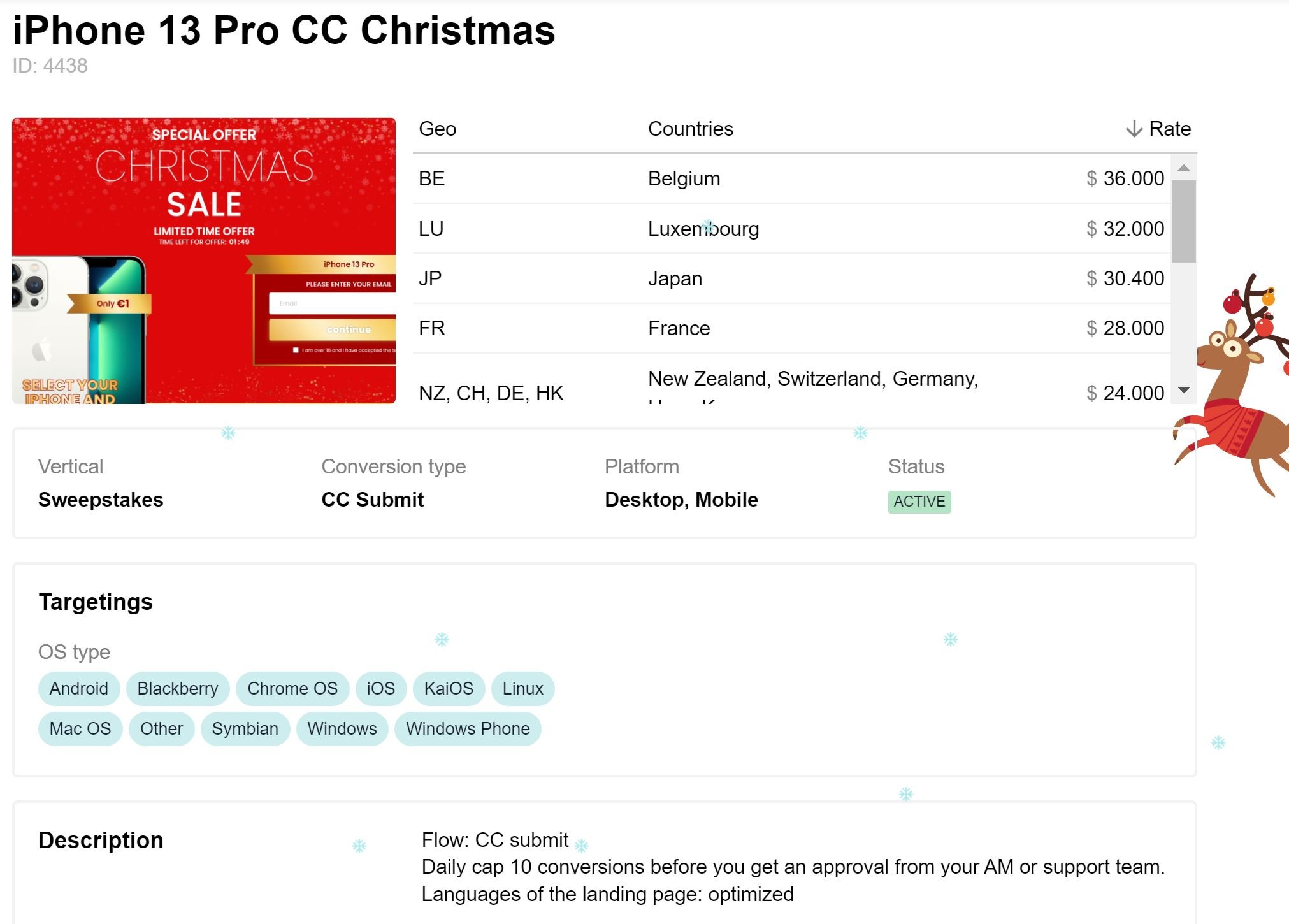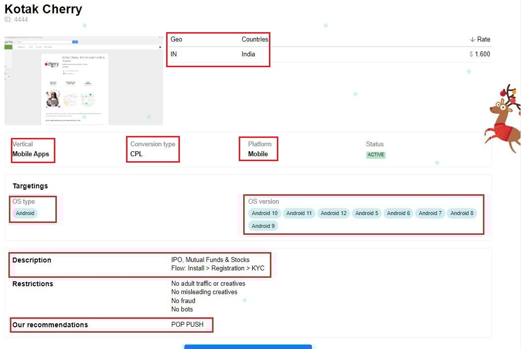 Também conhecido como ofertas de CPA. Eles contêm todos os detalhes e requisitos específicos que afiliados como você precisam atender. E quando você respeitar todas as condições, poderá cobrar por cada lead ou ação gerada.