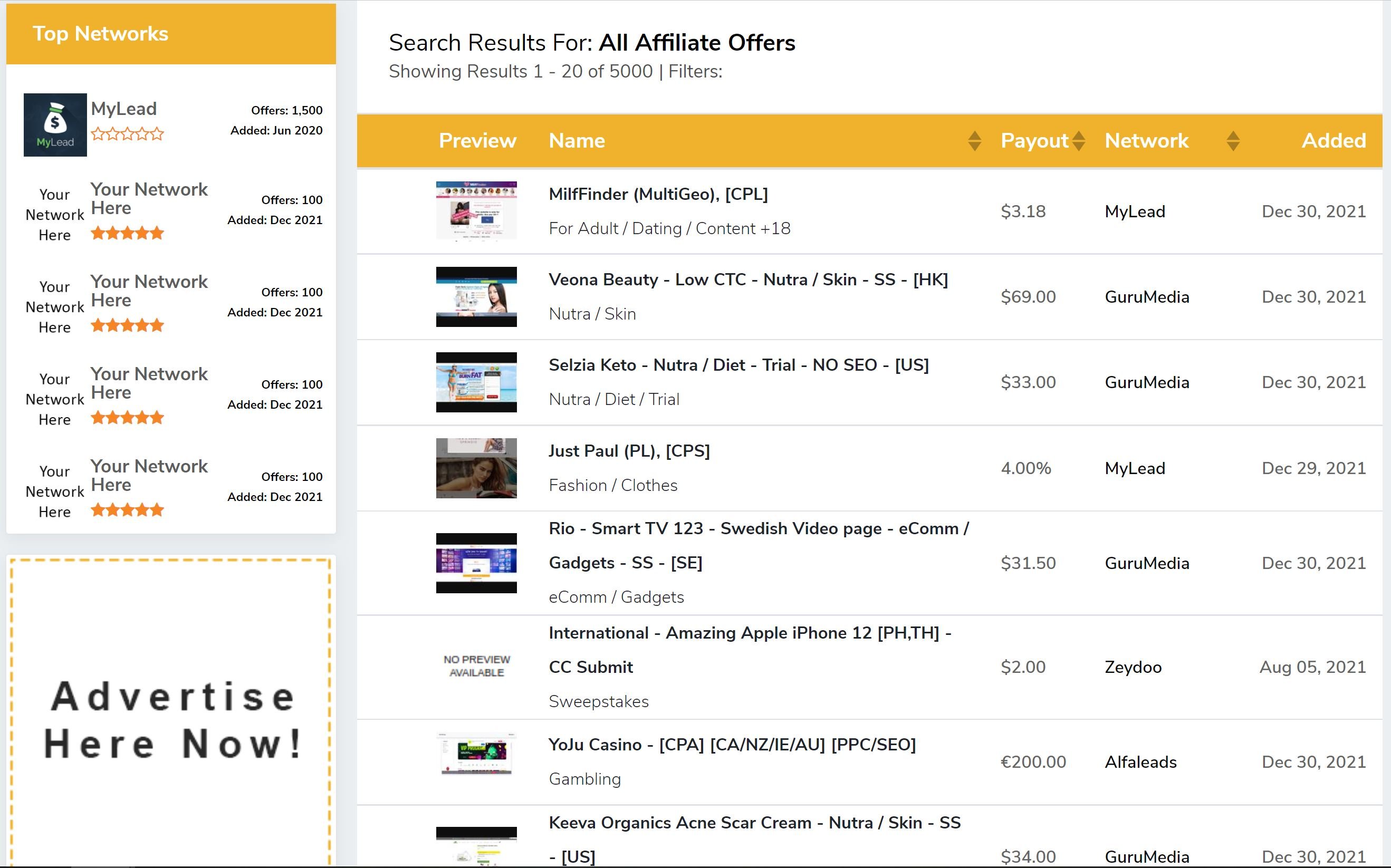 Vale a pena observar que as redes CPA geralmente são especializadas e se concentram em um setor com verticais semelhantes. Obviamente, você pode consultar fóruns ou simplesmente pesquisar on-line as melhores redes de CPA que têm ofertas na vertical de que você precisa.