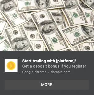 Já com o Push, você pode ser mais direto e usar criativos básicos que sugerem uma chance de ganhar dinheiro fácil. Aqui está um bom exemplo: