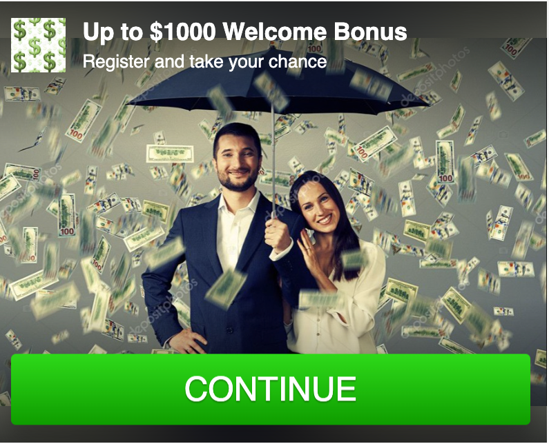 Os criativos para anúncios Intersticiais têm a mesma lógica do Push – bônus de depósito e formulários de registro funcionam muito bem. As imagens podem ser usadas como banners ou criativos de pré-lander. Veja um exemplo de Intersticial: