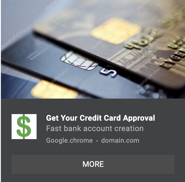 Os afiliados raramente usam pré-landers para ofertas de cartão de crédito, então você não precisa se preocupar com isso. Como nós consideramos o Push e o In-Page Push os formatos mais eficazes, separamos alguns exemplos para você. Aqui está um exemplo clássico: