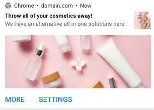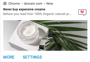 Anúncios Push + texto atraente como “Encontramos uma alternativa mais barata para o seu produto favorito” podem tornar seus anúncios ainda mais visíveis e clicáveis.