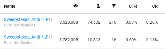 Como você pode ver, a versão final de uma notificação push foi um sucesso – 216 conversões contra 16 é um resultado impressionante.