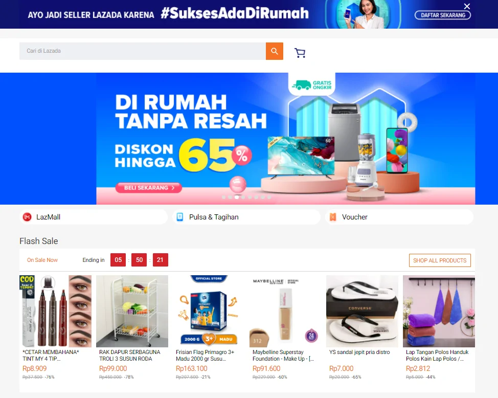 O texto “Gratis ongkir untu semua” significa “Frete grátis para todos”. Nada mal! No entanto, quando você vê o que exatamente será enviado gratuitamente… É mais provável que você clique! Esse deve ser o motivo pelo qual o formato Onclick teve um desempenho melhor. Dá uma olhada: