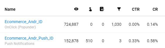 Está vendo? Em vez de 3 conversões com o Push, temos 1030 com o Onclick! Essa é uma diferença considerável.