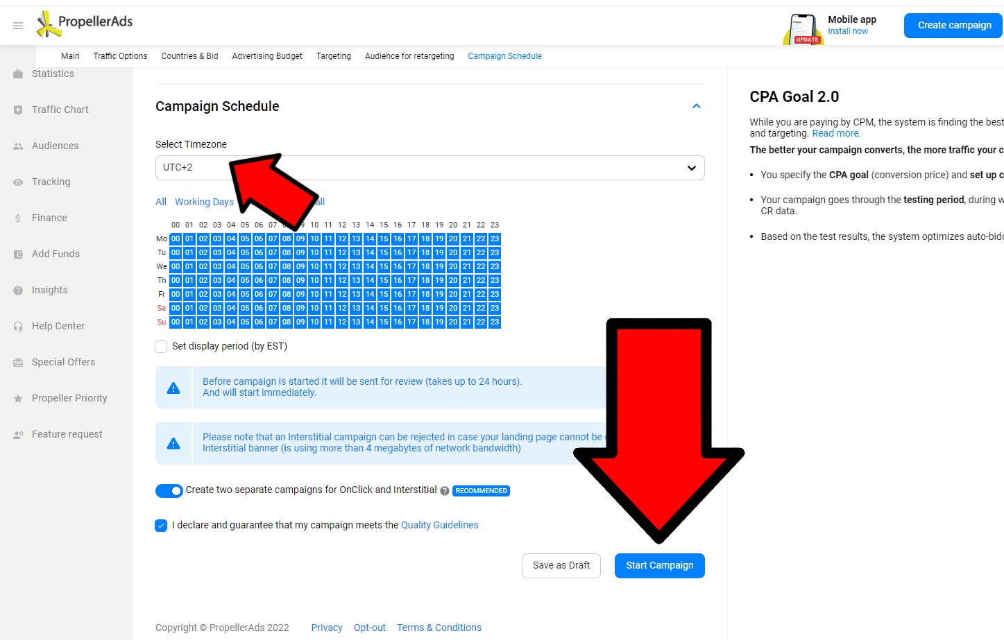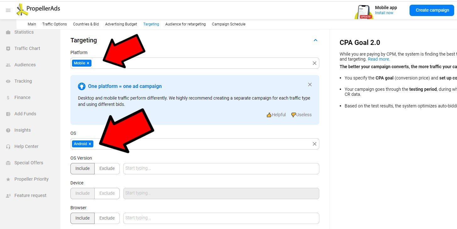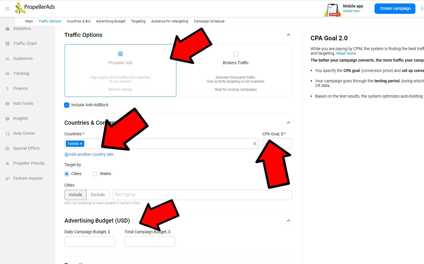 Ahmed worked like a pro! He added his campaign to the Bemob tracker and adjusted all necessary settings in his PropellerAds account. Here is how he set his campaign (scroll the gallery):