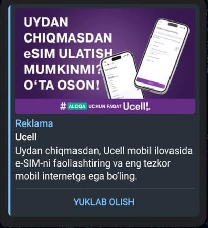 Por exemplo, de acordo com Timur Bakiev, proprietário da ClickMe, os anúncios do Telegram são um dos métodos de publicidade mais baratos no Uzbequistão: você pode buscar CPMs tão baixos quanto € 0,02, então um investimento de € 1.000 pode resultar em cerca de 50 milhões de impressões. Neste cenário, você pode começar com cerca de 300 euros para testar e 700 euros para o restante da campanha.