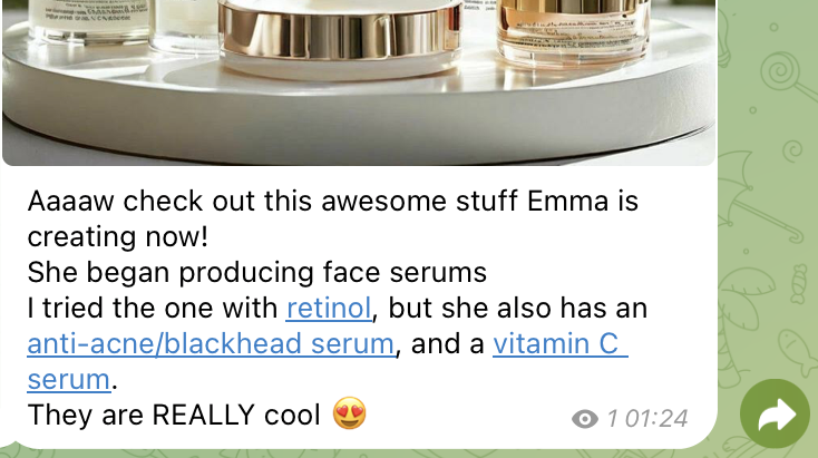 - Anúncios Pagos em Canais do Telegram. Essa é uma forma de publicidade do Telegram em que você compra posts patrocinados em vários canais, relacionados ao tópico da sua oferta. Aqui está um exemplo: