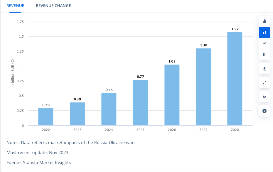 De 290 milhões de euros em 2022, espera-se que a renda global da indústria atinja 1,57 bilhões em 2028, um aumento de mais de cinco vezes em seis anos. Além disso, de acordo com os pesquisadores da Statista, esse crescimento certamente será impulsionado pela tão esperada lei de legalização, que ainda está por vir.