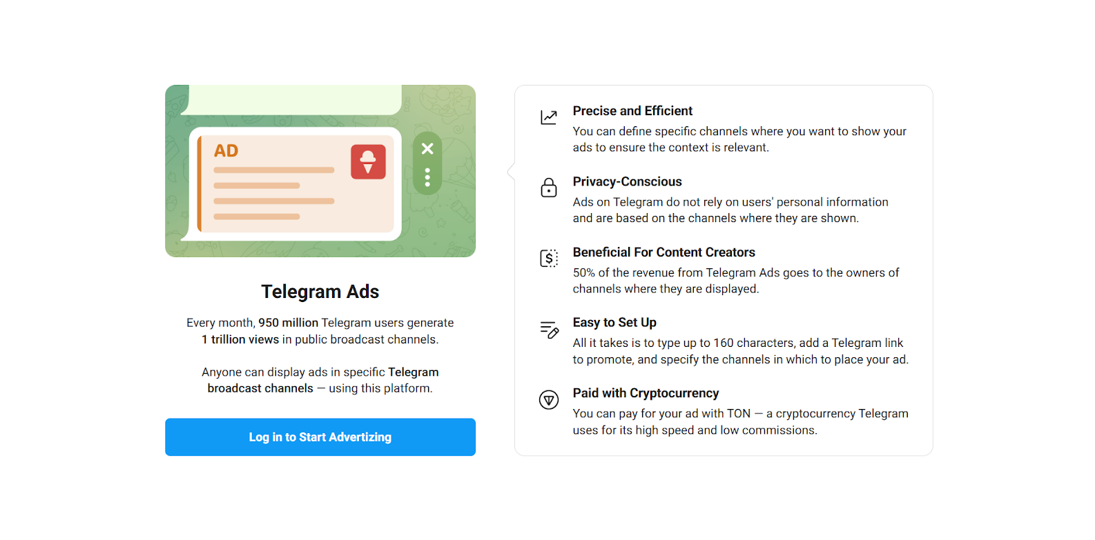 O Telegram foi projetado para conectar você diretamente com usuários altamente engajados em grupos e canais. É possível dizer que o sistema é mais parecido com os Facebook Ads, mas os requisitos do Telegram são bem mais simples, especialmente para iniciantes.