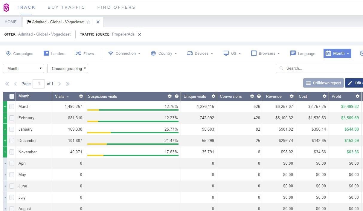 I have run a lot of popunder campaigns, and each time I make a profit. I think that I managed to create a winning structure that adapts to the current situation, test results, and what my tracker tells me.