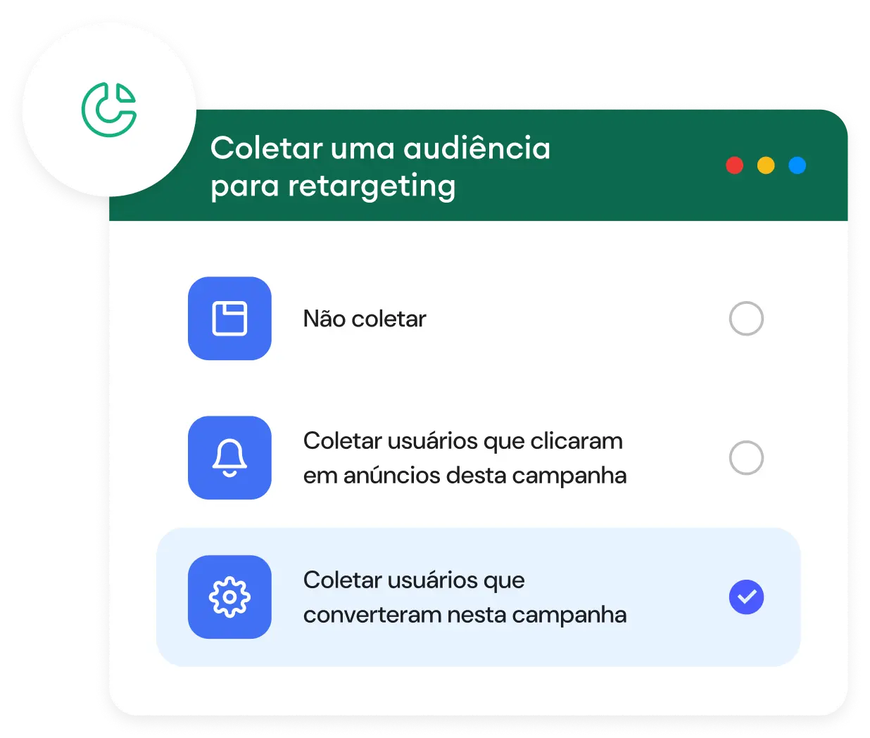 Use a opção de retargeting para engajar usuários que já visualizaram, clicaram ou converteram seus anúncios