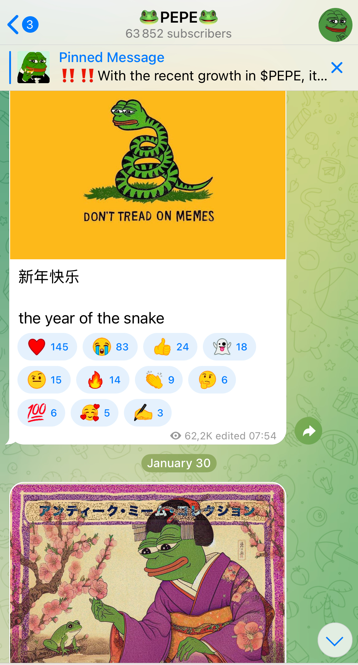 - They are born from memes, so they require some quality meme content around them. For example, look at the PEPE Telegram channel: