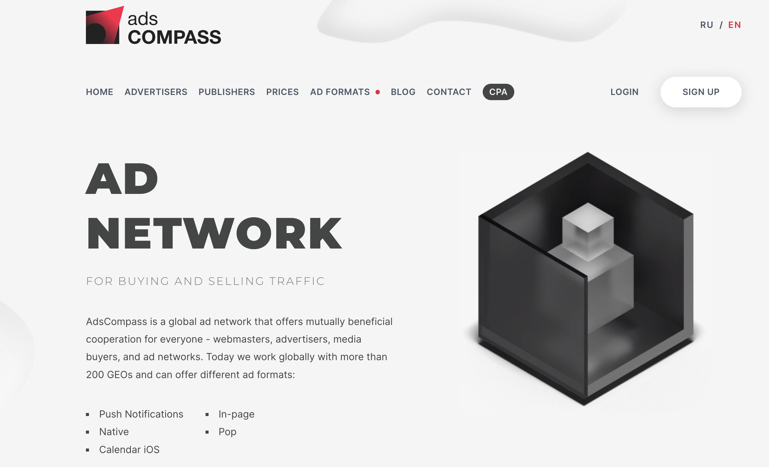 According to AdsCompass numbers, they have 6500+ active advertisers, 900 million daily impressions, and 30 billion requests a day. The network is based on a self-service platform for creating and optimizing campaigns.