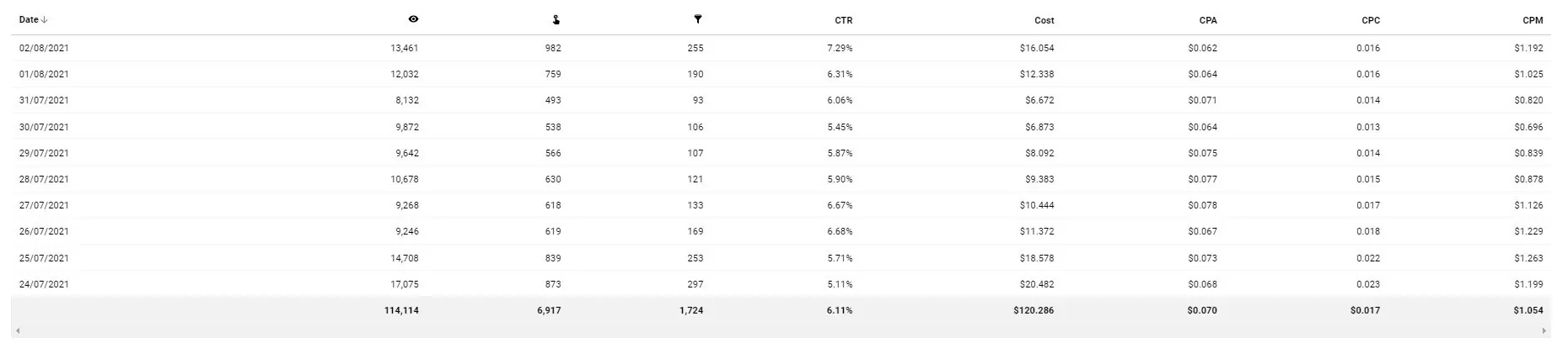 - Total spend (traffic purchase): $120.28
