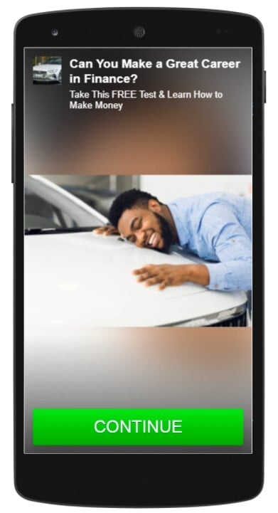 It uses an ever-green plot for such offers and depicts the successful young man. This picture motivates users to click the Continue button for more.